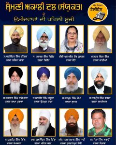 ਸ਼੍ਰੋਮਣੀ ਅਕਾਲੀ ਦਲ ਸੰਯੁਕਤ ਨੇ ਵੀ 12 ਉਮੀਦਵਾਰਾਂ ਦੀ ਲਿਸਟ ਜਾਰੀ ਕਰ ਦਿੱਤੀ ਹੈ। ਇਸ ਵਿੱਚ ਪਾਰਟੀ ਪ੍ਰਧਾਨ ਸੁਖਦੇਵ ਸਿੰਘ ਢੀਂਡਸਾ ਦੇ ਪੁੱਤਰ ਅਤੇ ਸਾਬਕਾ ਮੰਤਰੀ ਪਰਮਿੰਦਰ ਸਿੰਘ ਢੀਂਡਸਾ ਦਾ ਨਾਂਅ ਸ਼ਾਮਲ ਹੈ। ਪਰਮਿੰਦਰ ਢੀਂਡਸਾ ਲਹਿਰਾਗਾਗਾ ਤੋਂ ਹੀ ਚੋਣ ਲੜਨਗੇ। ਇਸ ਤੋਂ ਇਲਾਵਾ ਸਾਬਕਾ ਅਕਾਲੀ ਸਾਂਸਦ ਪਰਮਜੀਤ ਕੌਰ ਗੁਲਸ਼ਨ ਨੂੰ ਜੈਤੋਂ ਤੋਂ ਟਿਕਟ ਦਿੱਤੀ ਗਈ ਹੈ। ਫਿਲੌਰ ਤੋਂ ਸਾਬਕਾ ਮੰਤਰੀ ਸਰਵਣ ਸਿੰਘ ਫਿਲੌਰ ਅਕਾਲੀ ਦਲ ਸੰਯੁਕਤ ਦੀ ਟਿਕਟ ‘ਤੇ ਚੋਣ ਲੜਨਗੇ।