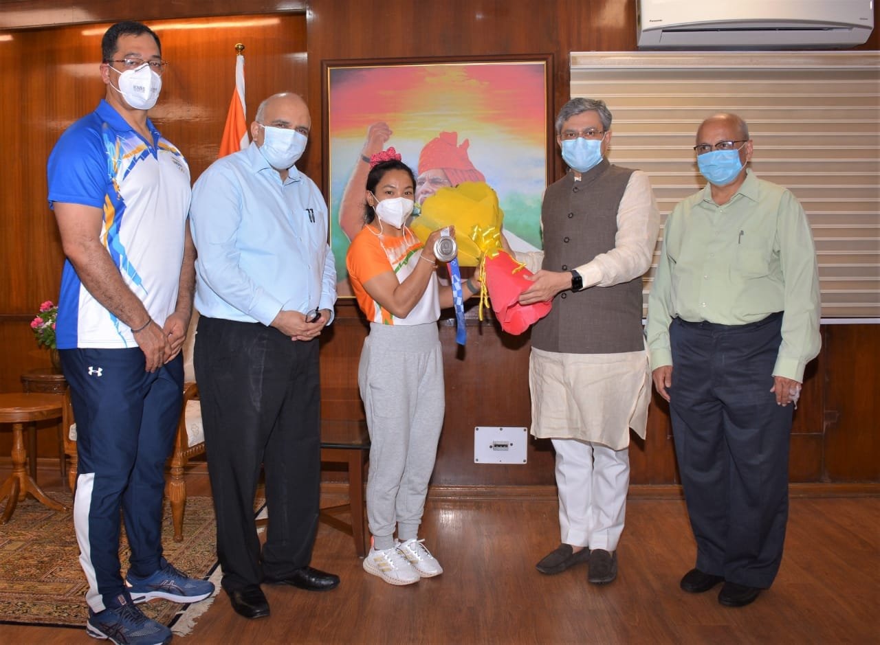 ਮੀਰਾਬਾਈ ਚਾਨੂ ਦੇ ਸਨਮਾਨ ‘ਚ ਭਾਰਤ ਸਰਕਾਰ ਵੱਲੋਂ ਖਾਸ ਸਮਾਗਮ ਵੀ ਆਯੋਜਿਤ ਕੀਤਾ ਗਿਆ ਸੀ, ਜਿਥੇ ਕੇਂਦਰੀ ਖੇਡ ਮੰਤਰੀ ਅਨੁਰਾਗ ਠਾਕੁਰ ਸਣੇ ਕਈ ਕੇਂਦਰੀ ਮੰਤਰੀਆਂ ਨੇ ਚਾਨੂ ਅਤੇ ਉਹਨਾਂ ਦੇ ਕੋਚ ਨੂੰ ਸਨਮਾਨਿਤ ਕੀਤਾ।